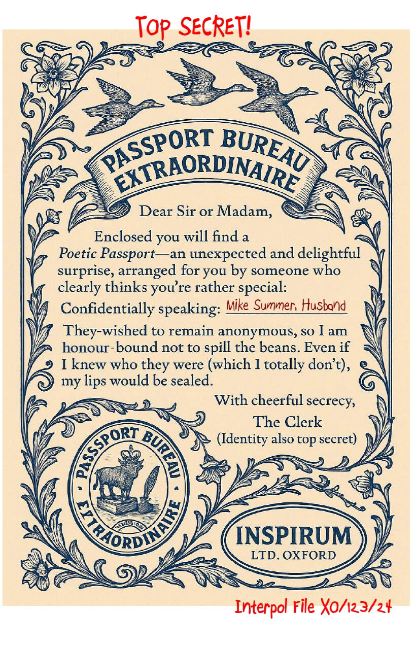 Choosing something original and enduring for a birthday -- beyond the routine flower bouquet and chocolate box -- can be frustrating.That's why Poetic Passport of Oxford, a gift like no other, with its quiet magic, has captured hearts across countries.With every Passport sent as a gift, a very serious official (!!) Note of Secrecy is attached. It warns its recipient that the exquisite document is being sent totally anonymously! (Even if you, the gift giver, let your name slip inside... 😊).